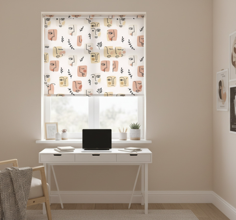 Genç odası stor perde soyut yüz desenleri