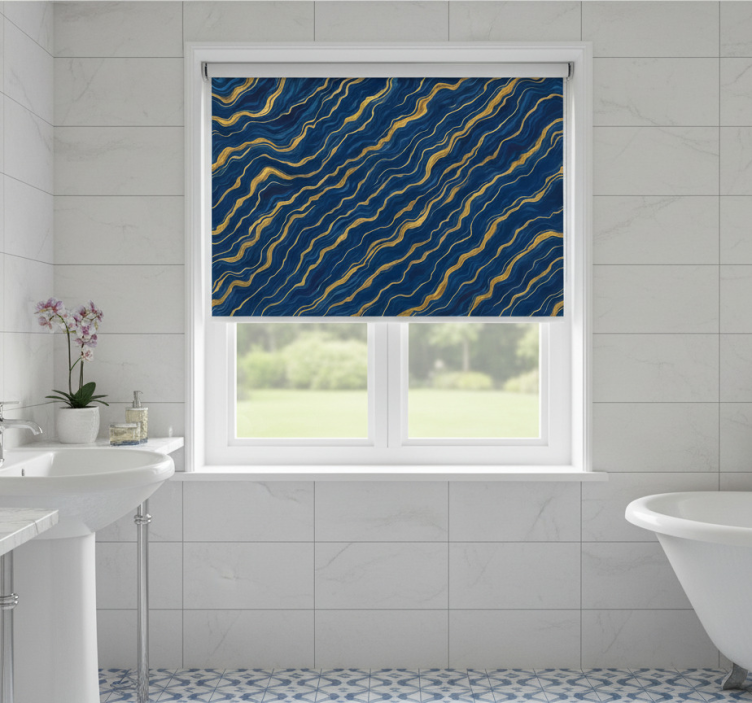 Mavi stor perde mavi ve altın mermer deseni