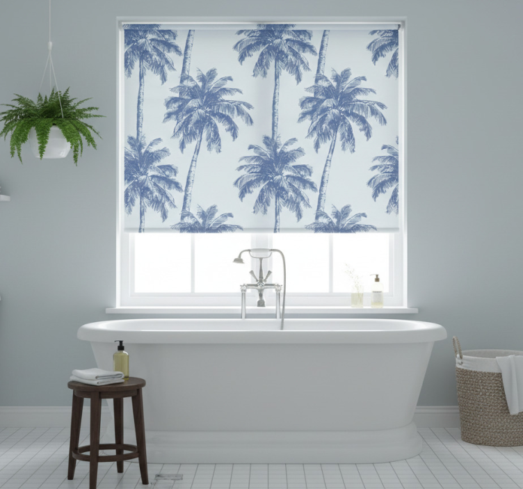 Mavi stor perde - palmiye deseni