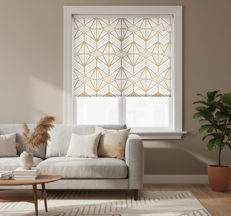 Modern stor perde - altın geometrik desen, kolay montajı ile dikkat çeker. Sadece 2 tıklama ile hızlı bir şekilde monte edilebilir ve temizlik sırasında da zahmetsizce çıkarılabilir. Bu sayede, pencere ve çevresinin hızlı bir şekilde temizlenmesini sağlar.