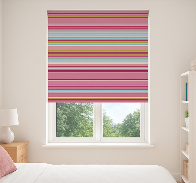 Pembe çizgili desen genç odası stor perde, 2 tıklama ile kolayca montaj yapılabilir. Kullanım kolaylığı sağlayan tasarımı sayesinde, hayalinizdeki odayı oluşturmak hiç bu kadar basit olmamıştı!
