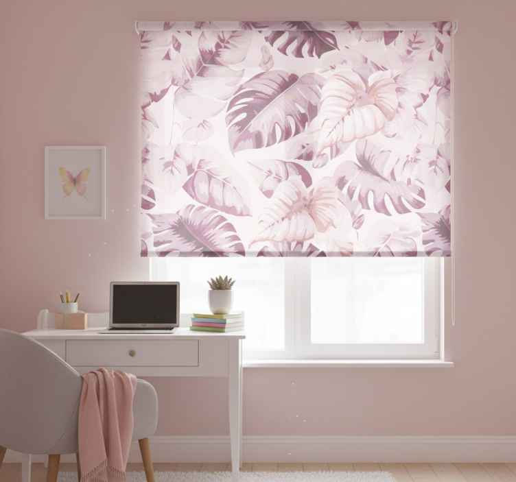 Pembe stor perde büyük tropikal yapraklar