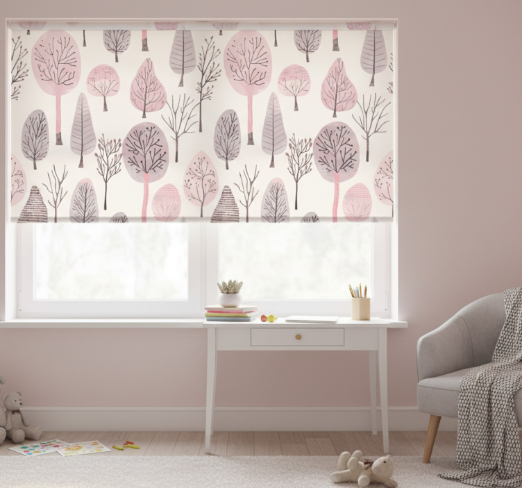 Pembe stor perde İskandinav ağaçları