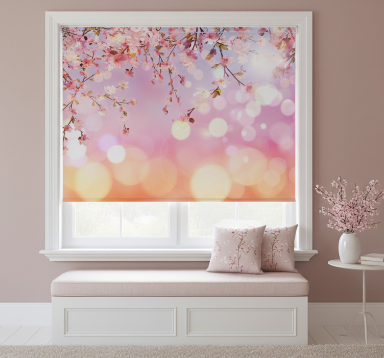 Pembe stor perde kiraz çiçeği 3d