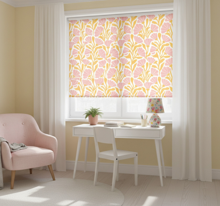 Pembe stor perde - modern renkli çiçek deseni, 2 tıklamayla kolay montaj imkanı sunar. Temizliği oldukça basit olan bu perde, istenildiğinde hızla sökülebilir ve pencerenizin etrafını pratik bir şekilde temizlemenizi sağlar. Ayrıca, odanın aydınlatmasını kontrol ederek, ferah ve şık bir ortam yaratır.