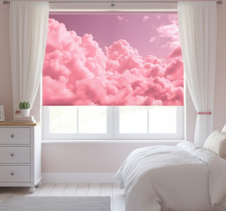 Pembe stor perde pamuk gibi bulutlar