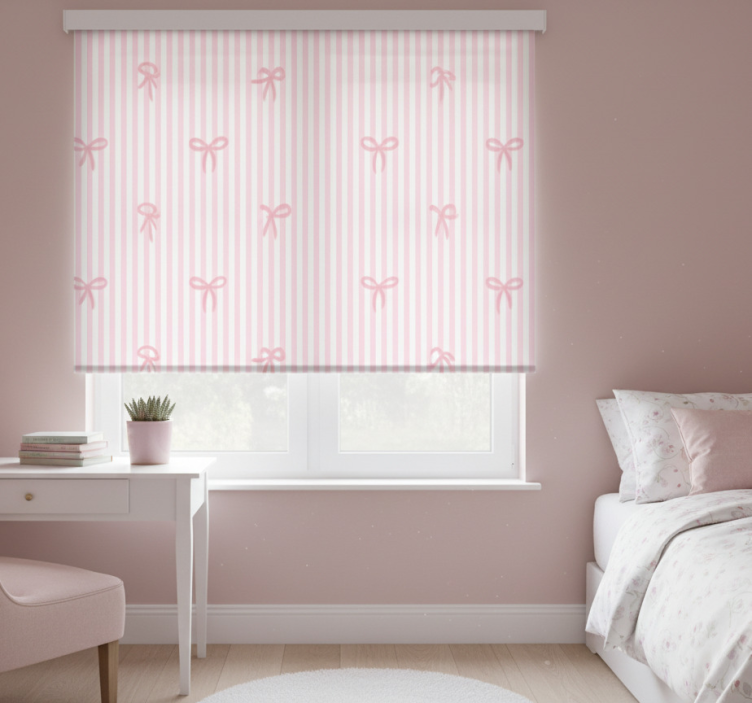 Pembe stor perde pembe çizgiler ve kurdeleler