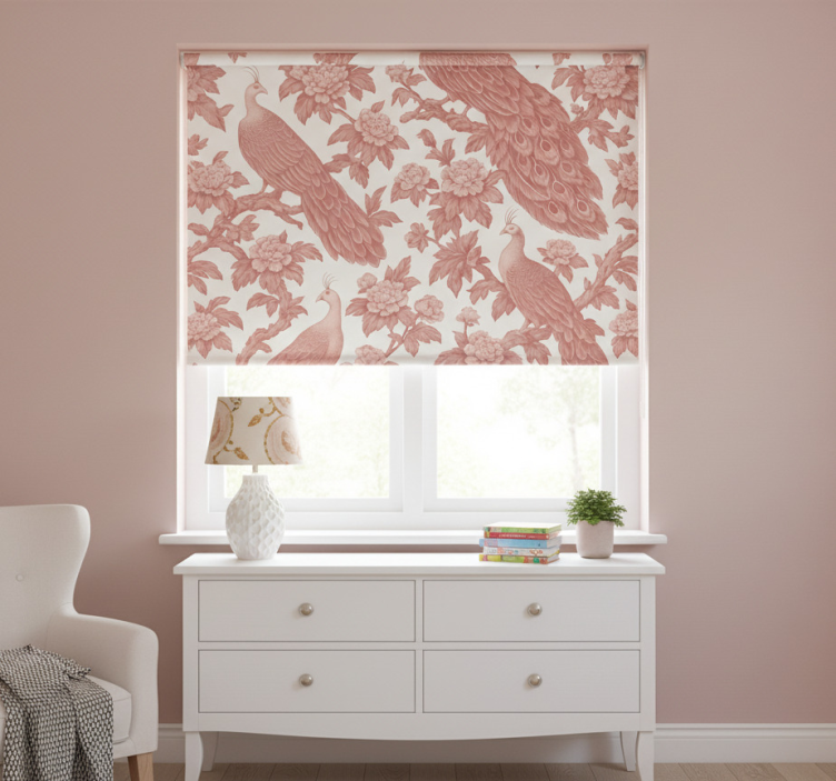 Pembe stor perde - pembe tavuskuşu deseni