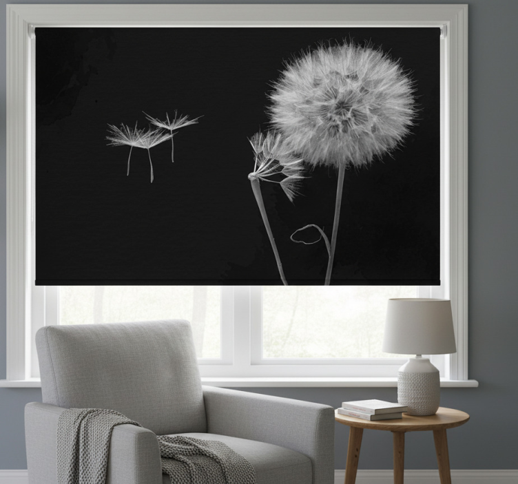 Siyah stor perde - dandelion başı ve tohumları duvar resmi