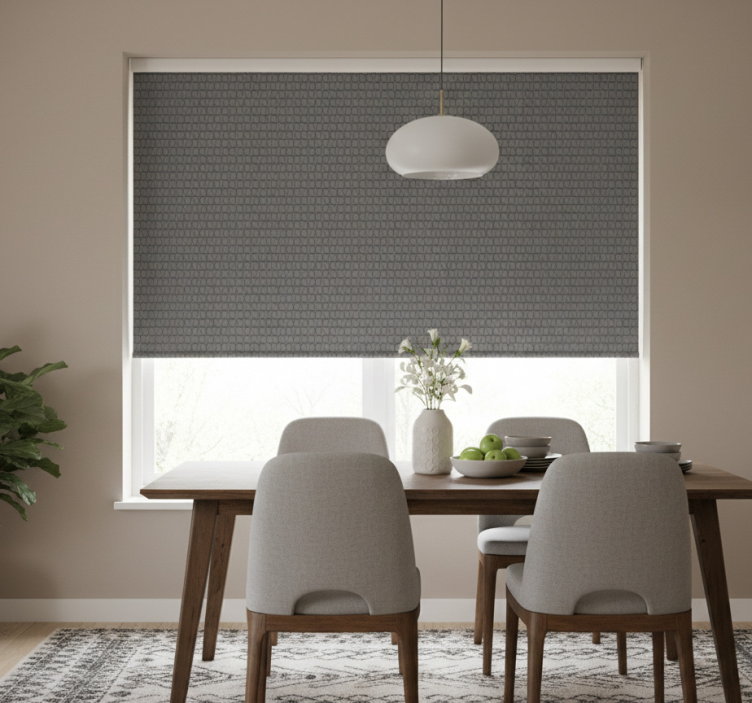 Yemek odası stor perde 3d gri küpler