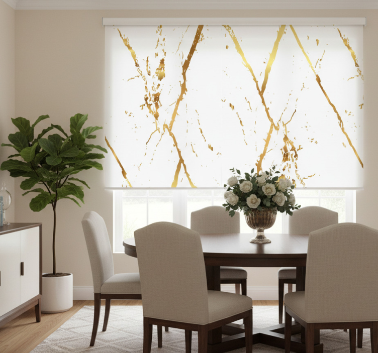 Yemek odası stor perde altın mermer çizgileri