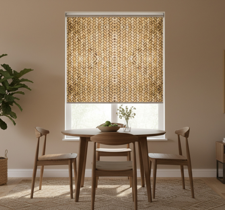 Yemek odası stor perde bambu dokulu efekt