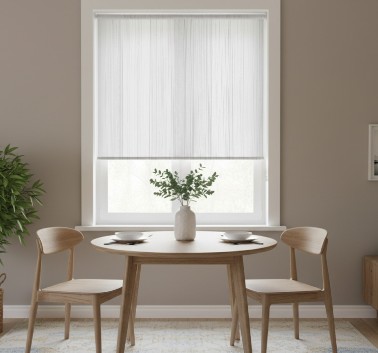 Yemek odası stor perde beyaz ahşap tarzı