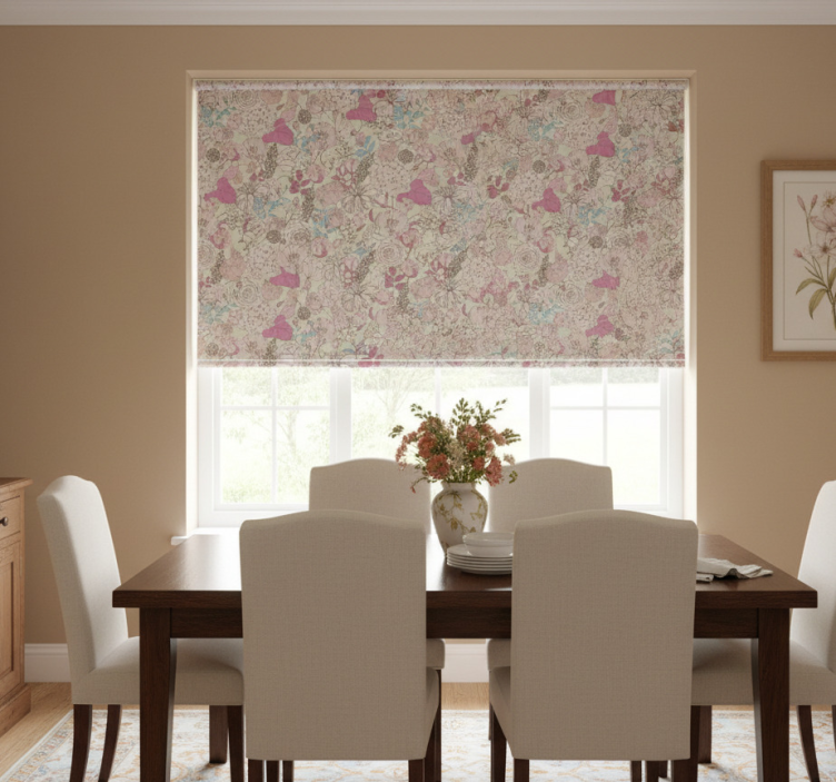 Yemek odası stor perde - Çiçekli grandmillenial tarzı