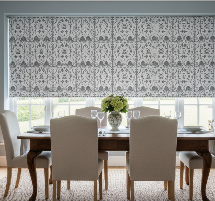 Yemek odası stor perde gri fransız provansal tarzı