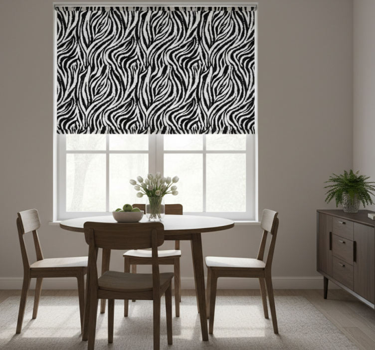 Yemek odası stor perde klasik düzensiz siyah beyaz zebra