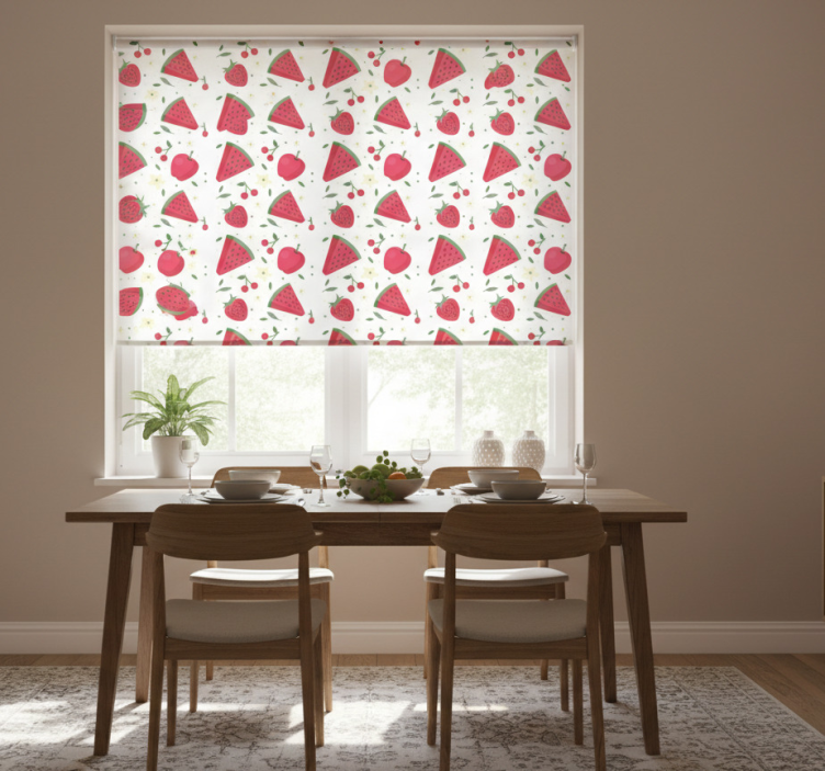 Yemek odası stor perde meyve desenleri