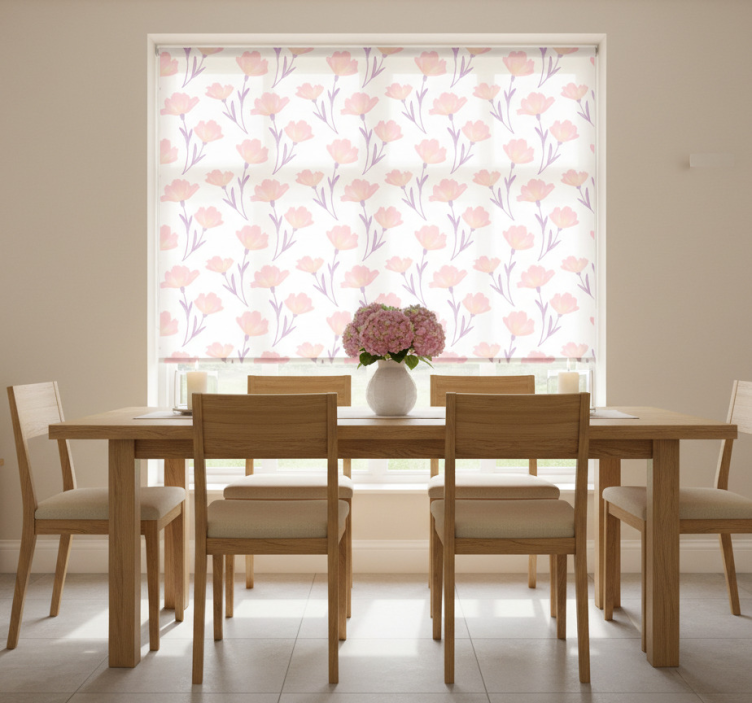 Yemek odası stor perde minimalistik suluboya çiçek deseni