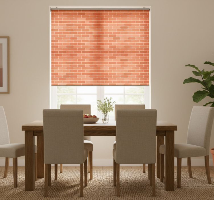 Yemek odası stor perde tuğla desenli yüzey