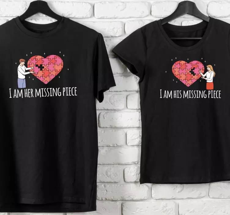 Çift tişörtlü bulmaca kalp bağlantısıSevgi dolu anlarınıza neşeli bir dokunuş katacak olan çift tişörtlü bulmaca kalp bağlantısı, eşleşen tişörtler ile romantik bir görünüm sunar. Bu tasarım, kalp figürüyle birlikte bulmaca parçalarını andıran bir yapıya sahip olup, eğlenceli bir şekilde oğlan ve kız için mükemmel bir seçimdir. Aşkı simgeleyen bu tişörtler, özel günlerinizde ya da günlük hayatta keyifli birer parça olarak karşınıza çıkacak.