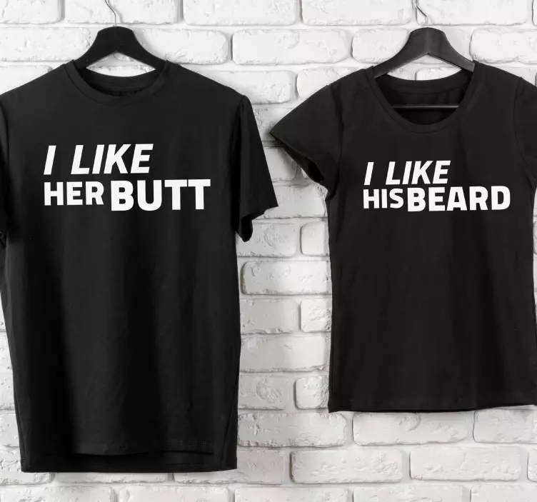 Çift tişörtlü - Çift mizah tişörtleriHayatın eğlenceli anlarını yakalamak için tasarlanmış Çift tişörtlü - Çift mizah tişörtleri, beğenmek, popo, sakal ve eğlence temalarını bir araya getiriyor. Tek renkli ve eğlenceli grafik tasarımı ile çiftler için mükemmel bir seçim! Siyah rengin zarafetiyle birleşen bu eşleşen tişörtler, mizah dolu metinleriyle dikkat çekiyor. Eğlenceli bir görünüm arayanlar için ideal bir seçenek.