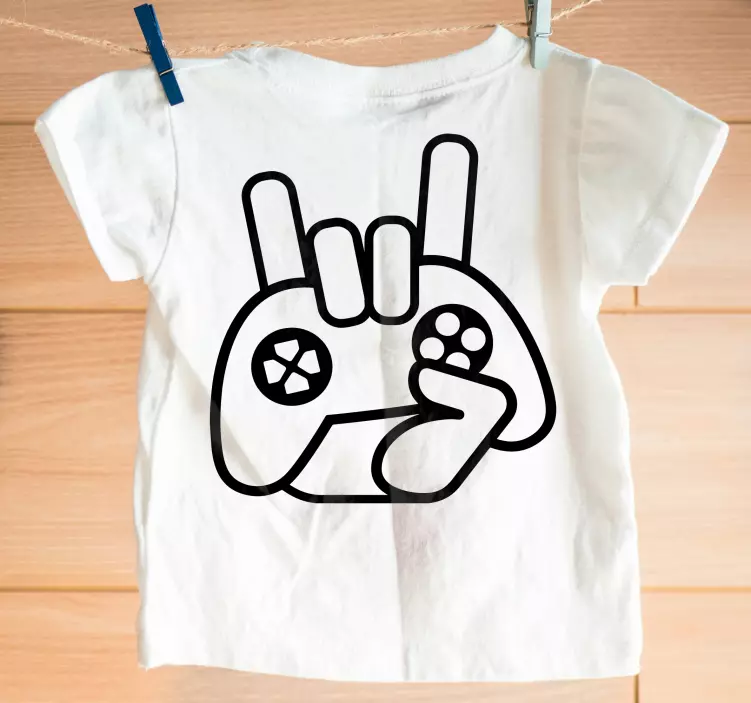 Çocuk tişörtü oyun el hareketiÇocuklar için tasarlanmış olan çocuk tişörtü oyun el hareketi, eğlenceli bir grafikle bezeli bir tasarıma sahiptir. Bu şirin tişört, video oyunlarını seven miniklerin hayal gücünü yansıtan bir kontrolör ve parmak işareti silueti içerir. Oyun oynamanın getirdiği neşeyi ve şakacı bir mimik ile eğlenceyi bir araya getirerek, çocukların stiline renk katıyor!
