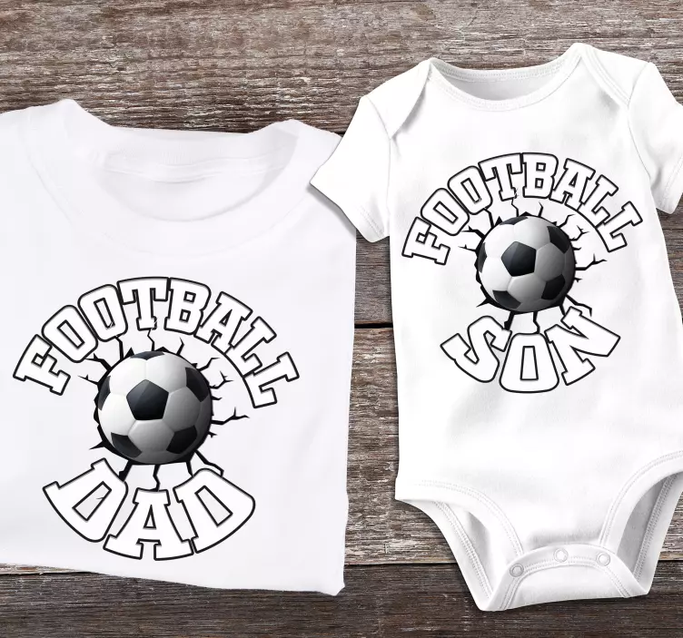 Bu metinde sırasıyla 'futbol oğlu' ve 'futbol babası' yazıyor. Baba ve oğulun ilişkilerini komik futbol bağlamında ifade etmeleri için eşleşen bir gömlek.