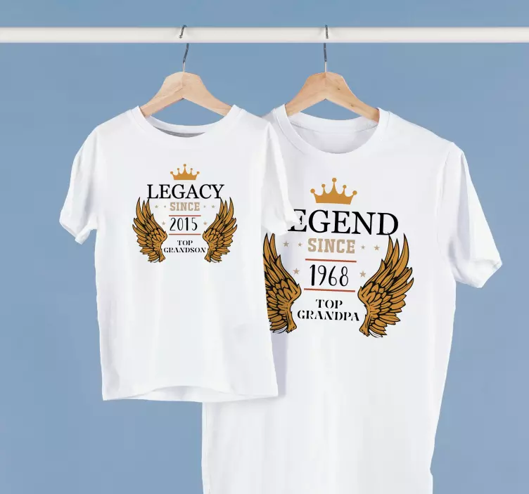 Bu tişört, ailenizle gurur duyduğunuzu modaya uygun bir şekilde göstermenin mükemmel bir yoludur. Tasarım, kanatlı bir taca ve ilgili bir metne sahiptir: miras... En büyük torundan beri, efsane... En büyük torundan beri. Büyükbaba ve torun için bu uyumlu gömlek, aile bağınızı göstermenin benzersiz bir yoludur ve her durumda harika görünecektir. Giymesi rahat ve makinede yıkanabilir yüksek kaliteli pamuktan üretilmiştir, bu da onu harika bir günlük giyim ürünü yapar.