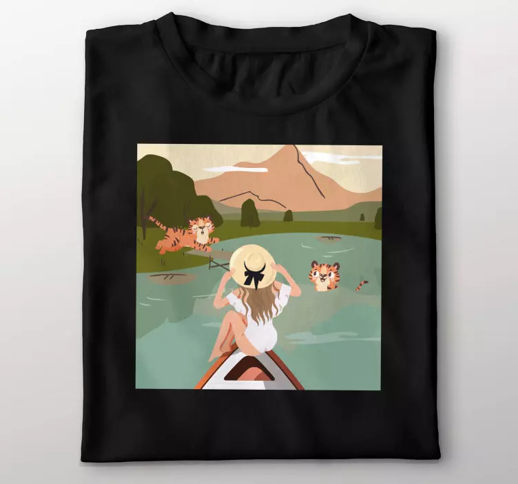 Tişört Macera ile KaplanlarHayal gücünüzü canlandıracak tişört macera ile kaplanlar tasarımı, doğanın büyüleyici güzelliklerini ve eğlenceli karikatür figürlerini bir araya getiriyor. Kız çocukları için özel olarak tasarlanan bu tişört, kaplanlar, hayvanlar ve doğa temalı illüstrasyonlarıyla dikkat çekiyor. Göl kenarındaki serin su manzarasında, şapka takmış sevimli bir kaplanın rahatlaması, dış mekan gezintilerini daha da keyifli hale getiriyor!