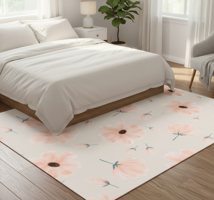 Büyük çiçek akvarel deseni bej zemin yatak odası pvc halı