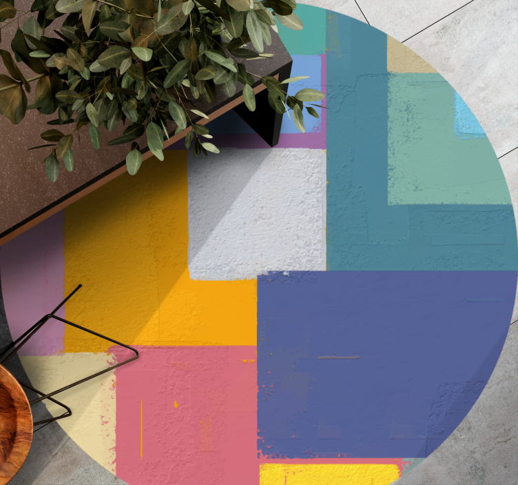 Referans: R19809Bu tasarım, sarı, pembe, mavi ve mor gibi çeşitli renklerde canlı bir geometrik şekil düzenlemesi sunuyor. Blokların cesur kontrastları, dinamik bir görsel etki yaratarak genel estetik çekiciliği artırıyor.