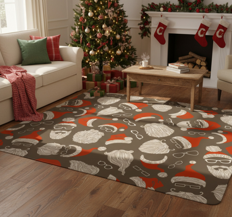 Noel pvc halı vintage noel baba yüzü deseni