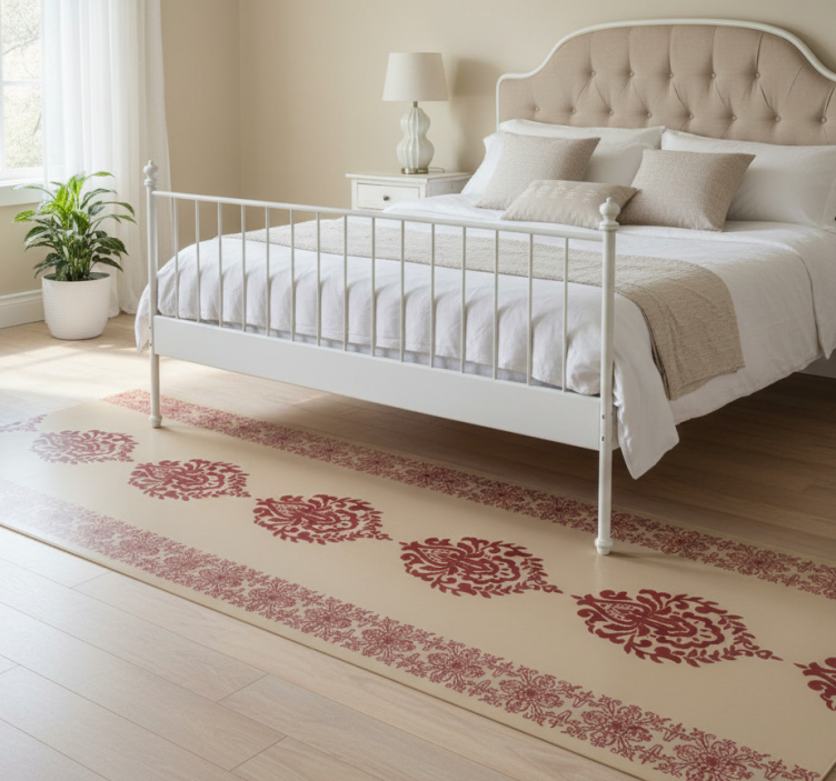 Yatak odası pvc halı bej çiçek desenli fransız provansal