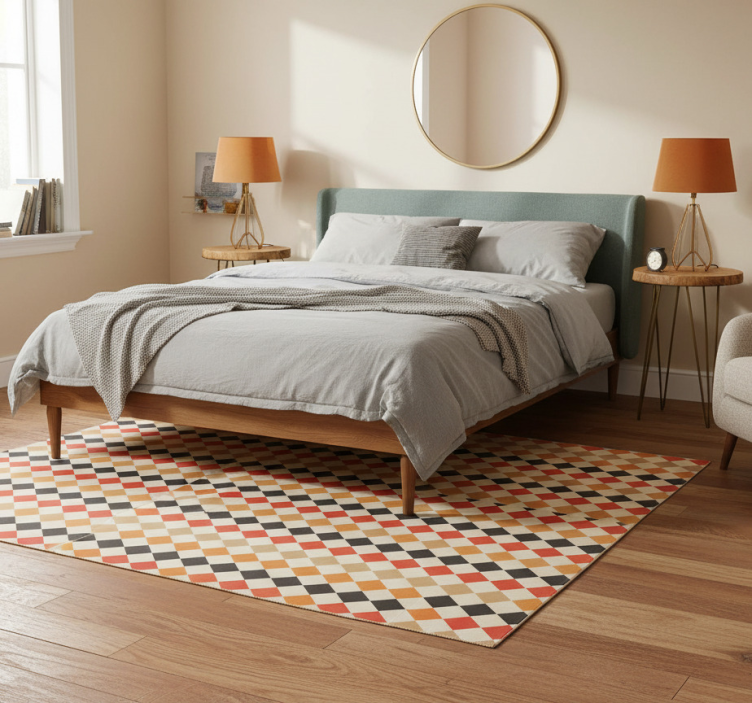 Yatak odası pvc halı çok renkli elmas desenli retro 80