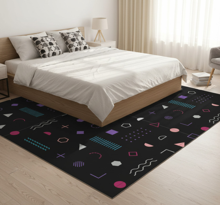 Yatak odası pvc halı çok renkli retro geometrik şekiller