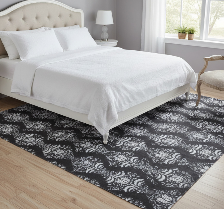 Yatak odası pvc halı fransız provence siyah beyaz desen