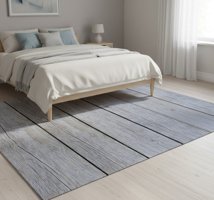 Yatak odası pvc halı gri ham ahşap nordic tarzı