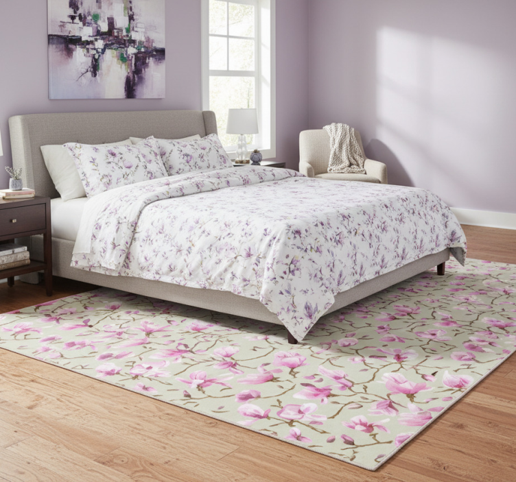 Yatak odası pvc halı mor magnolya ağaç tepesi